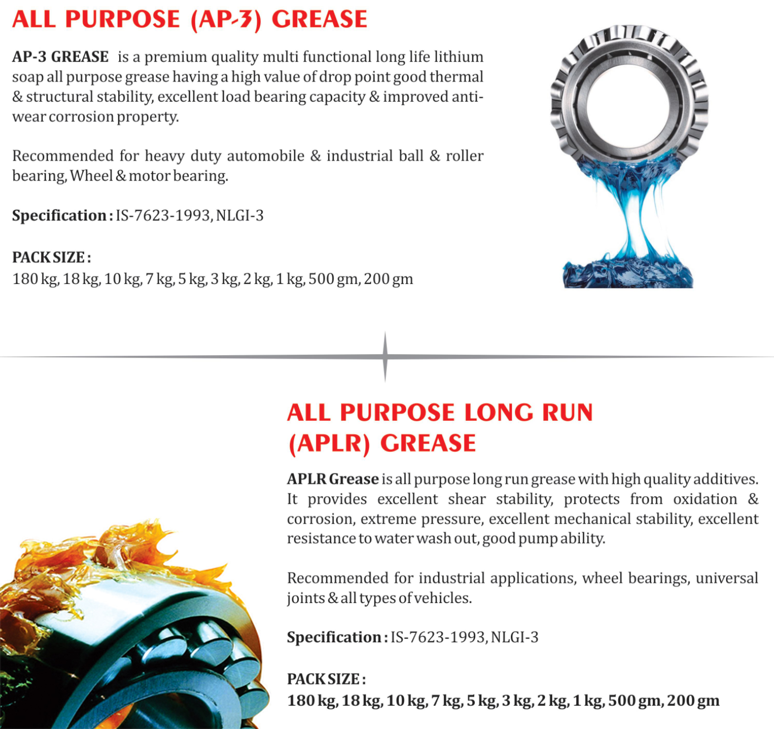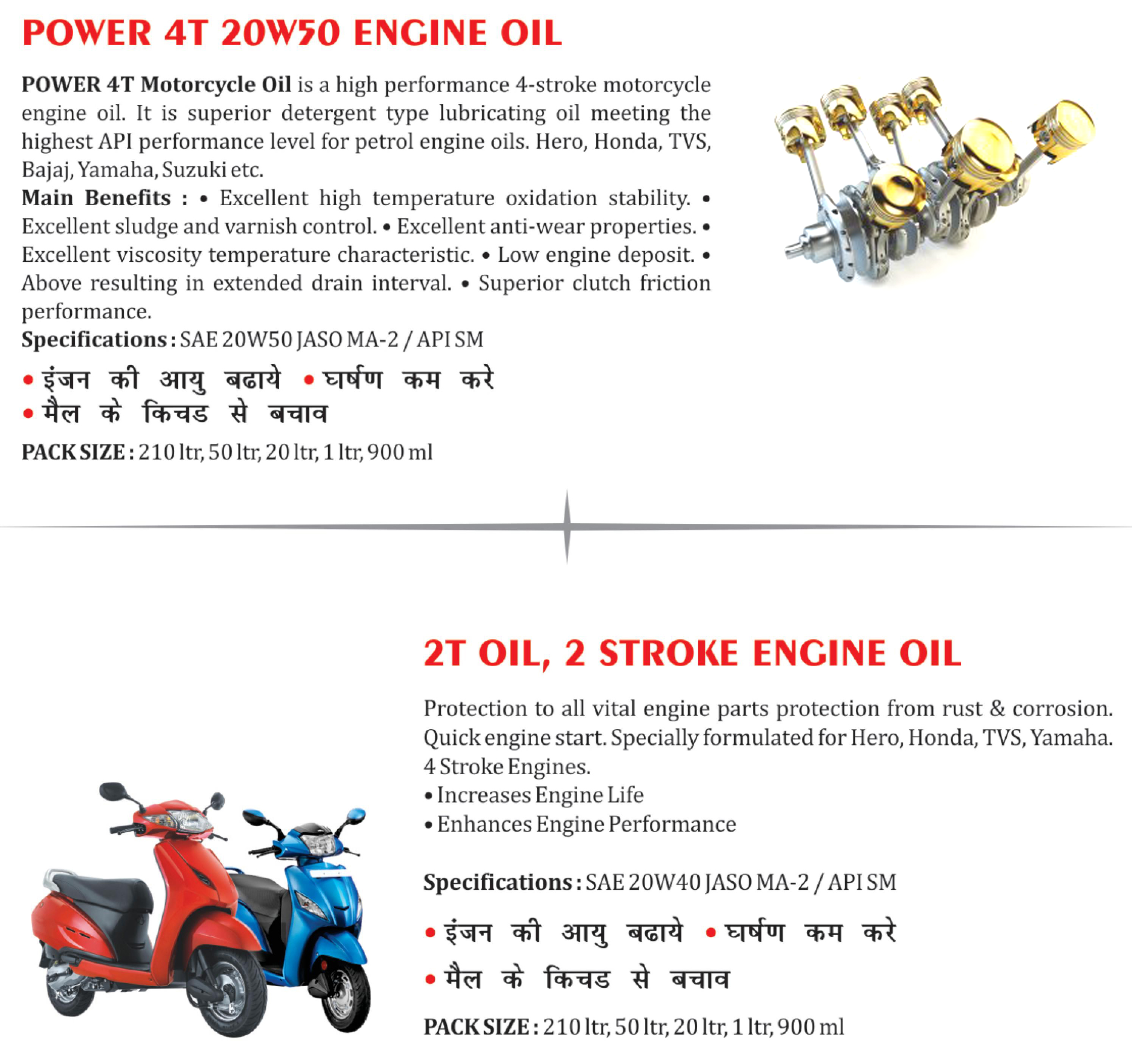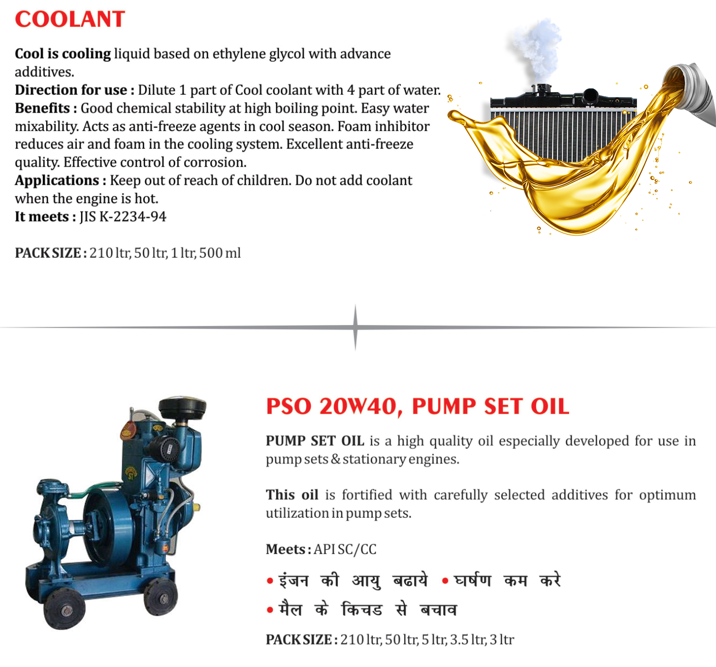 All Automotive Grade Oil, Industrial Oil, Gear Oil, Brake Fluid, Greases & Coolant.